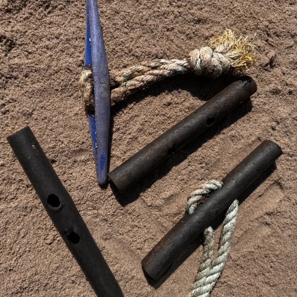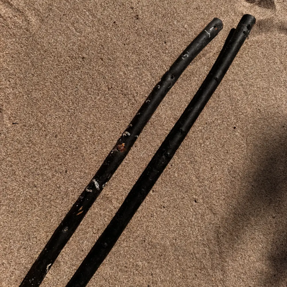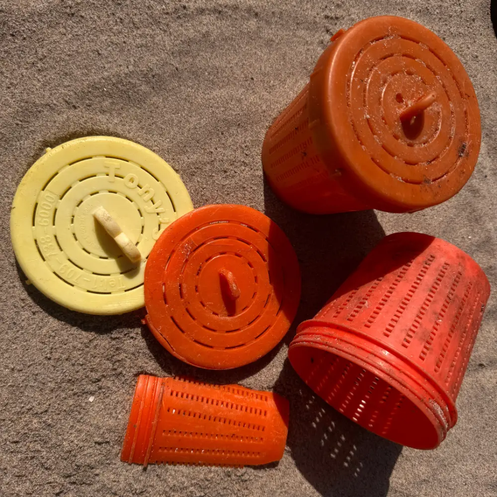Creel SheathsPlastic strips which have broken and fallen off fishing creel previously dipped in plastic.